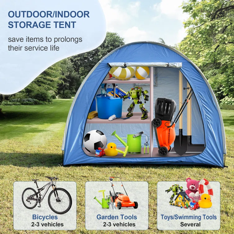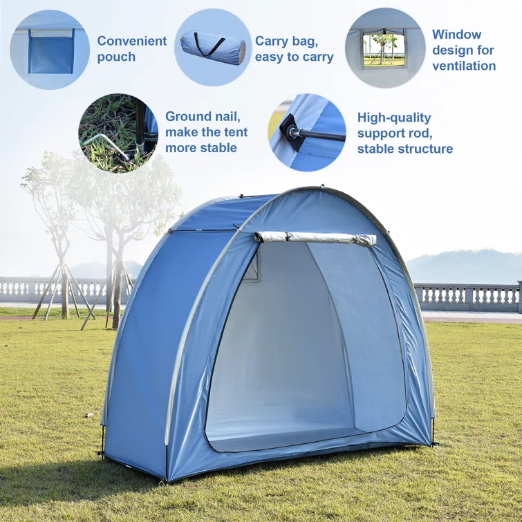 This tent is designed to accommodate bicycles and associated paraphernalia while maintaining a footprint that is not too obstructive such that it takes over your garden, patio, or driveway. It is a handy place to stash up to 3 bikes if you don’t have any outdoor storage or while traveling. Easy to pitch, this handy tent is waterproof and has UV protection so they’re kept safe and sound. You can also use it to shelter your BBQ grill, camping chairs, tables, beach inflatables, sports gear, garden tools, child car seats, rubbish bins, and more.
