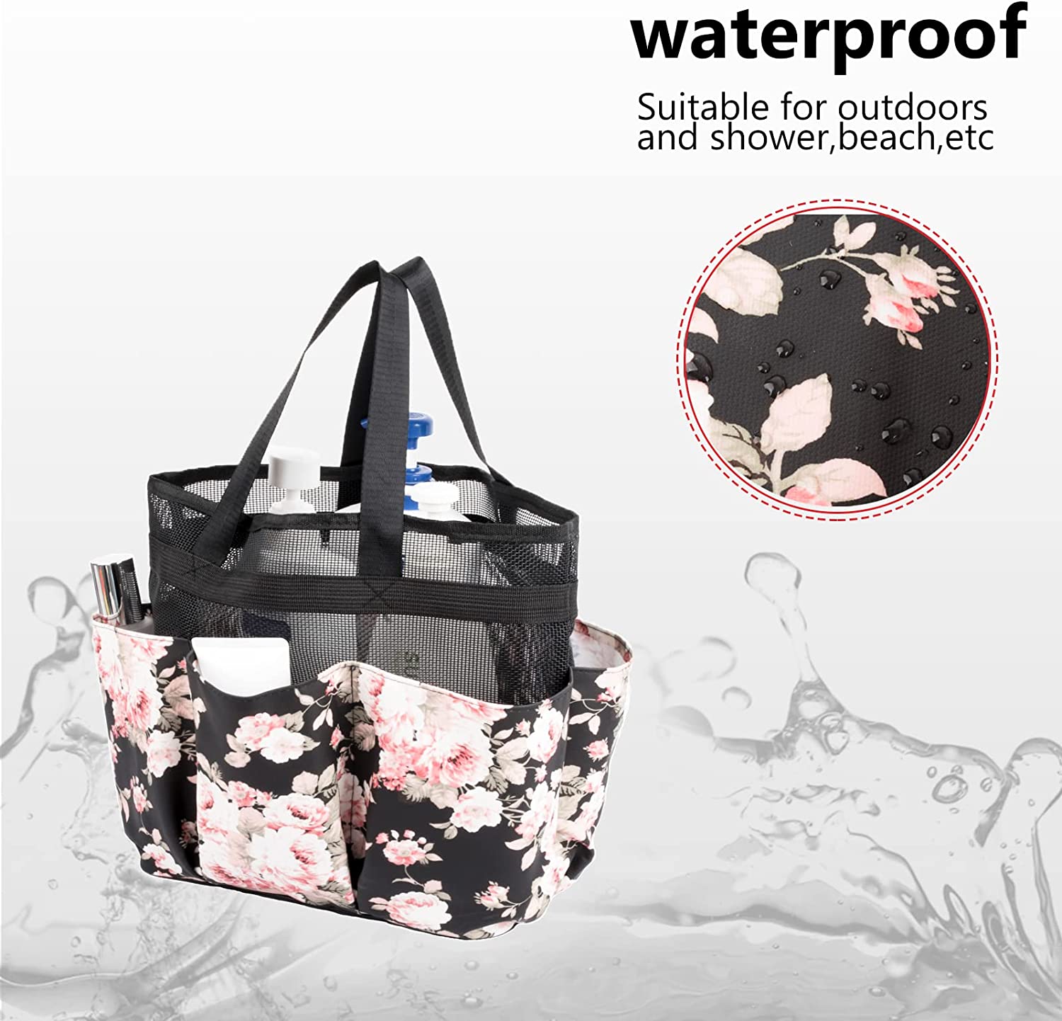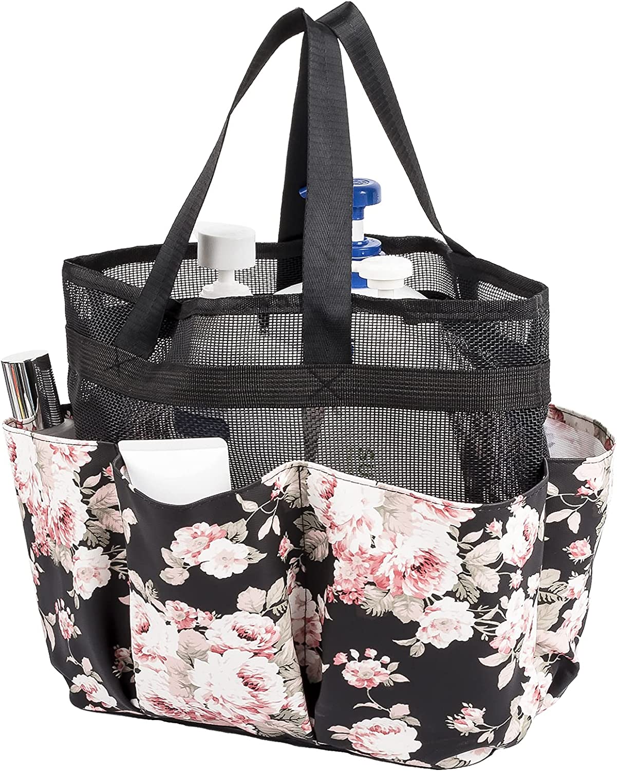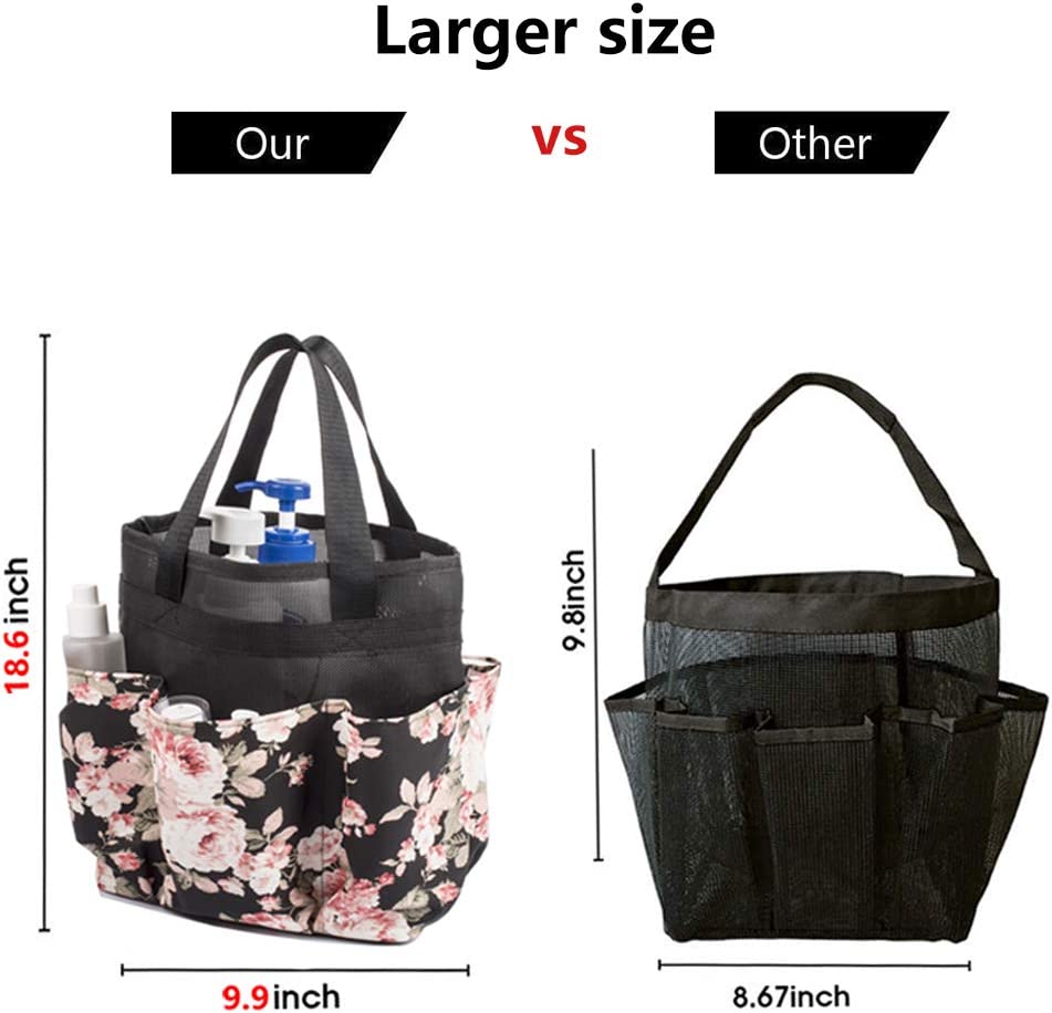 - L 9.87 × W 6.1 × H 11.2 inches and the mesh drainage holes in the base make this a great shower tote bag for college students & campers. And easily stack when not in use for maximum space utilization.