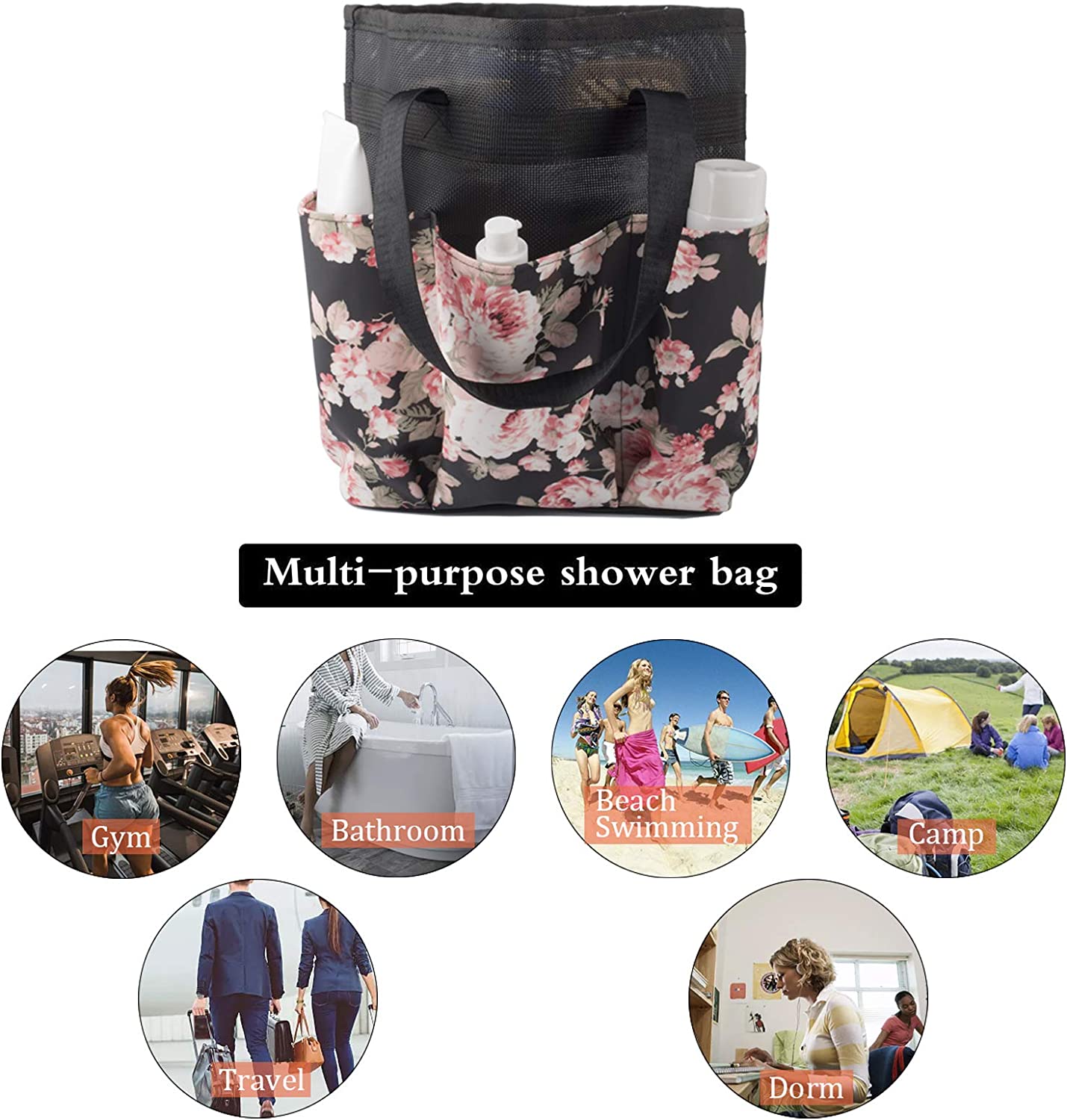 - Portable shower caddy great for use in the bathrooms, gyms, showers, swimming pools, traveling, schools, beach, and more.