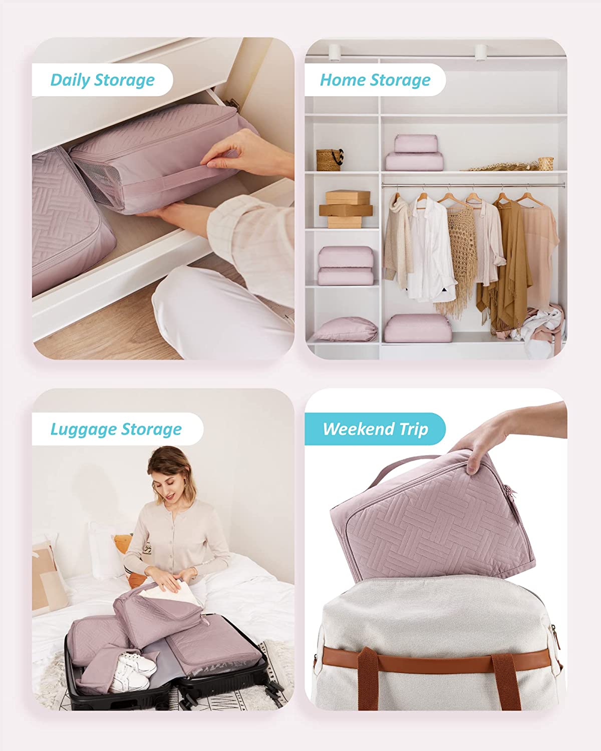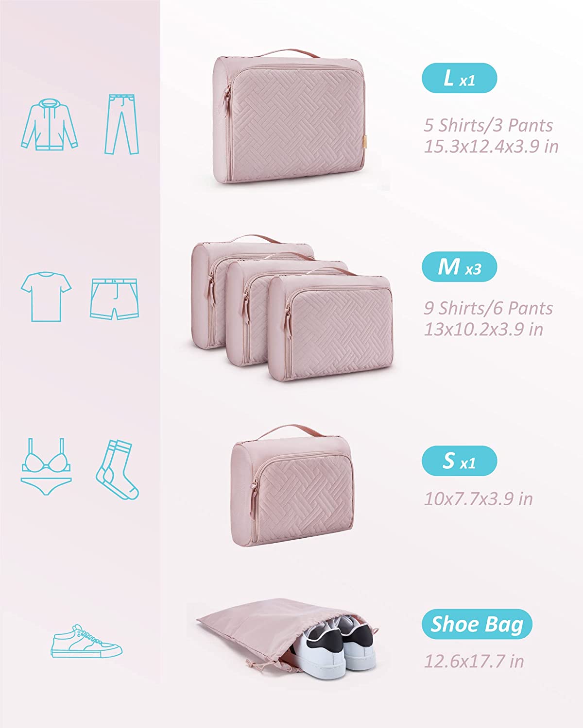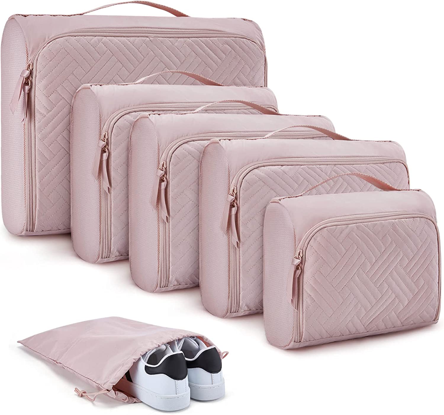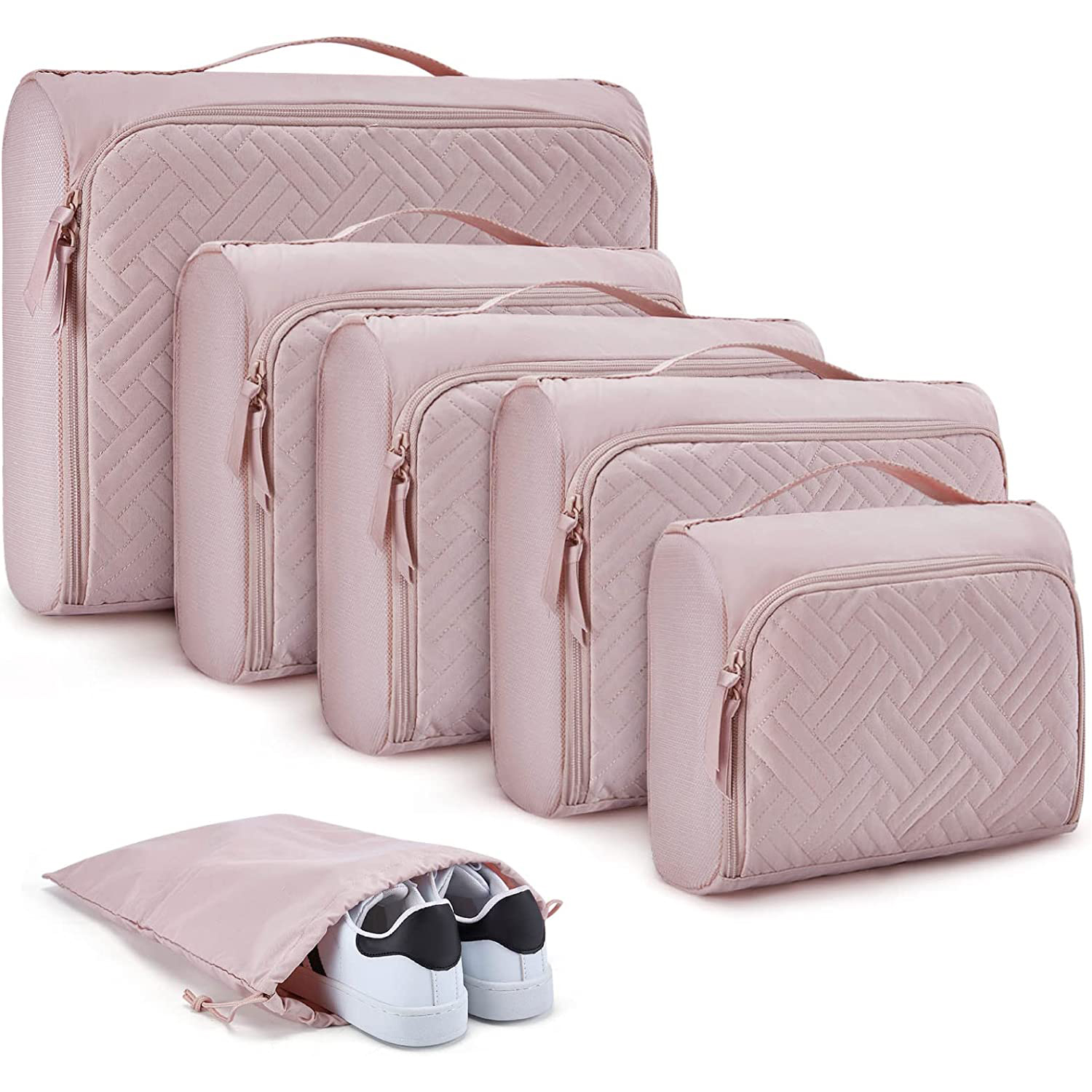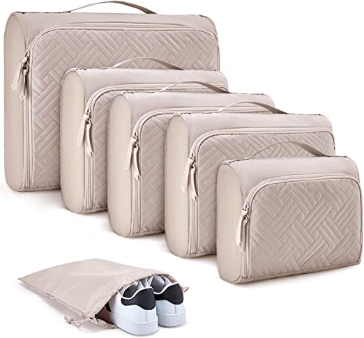 Packing Cubes for Travel, 6 Set Packing Cubes for Suitcases Organizer, Quilted Look Travel Organizer Cubes for Packing, Luggage Organizer Cubes with Shoes Bag for Women