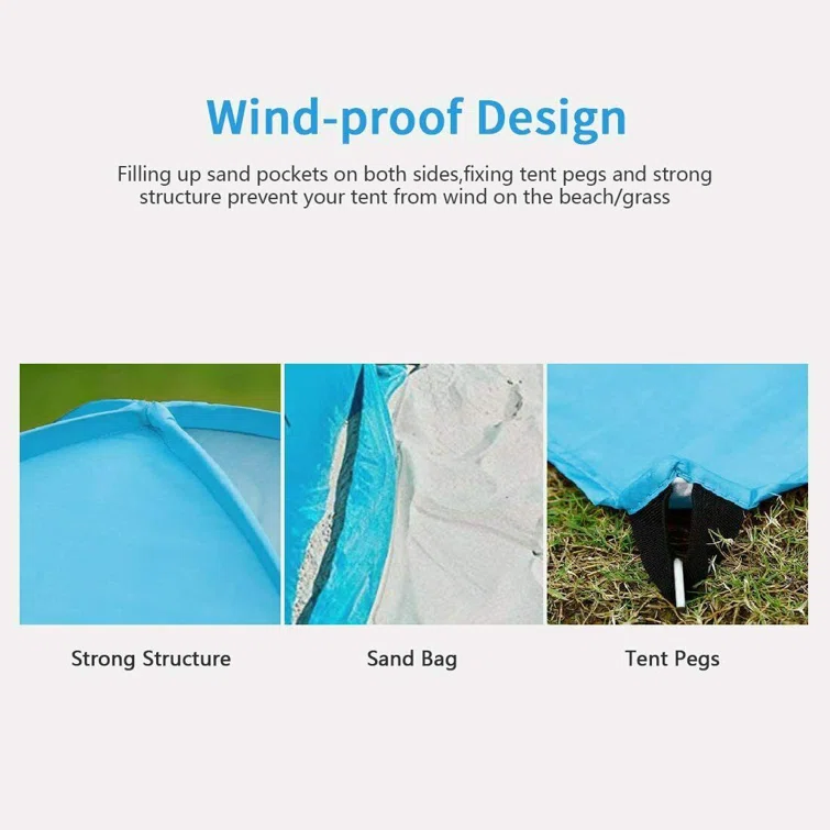 - Innovative Pop-up Design: Pop up automatically with no assembling required. The beach shade comes in a portable carrying bag so you can easily set up and fold up. Please keep your children or other fragile goods away from the tent while you are ready to open it. We will replace it for free if you receive a bad tent or break it in the folding process.