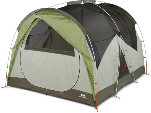 - Freestanding 6-person design features a triangulated center pole and an extended ridge pole for stability in windy conditions