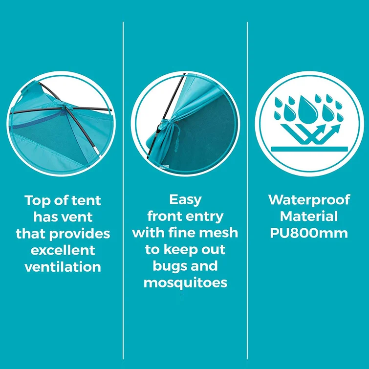 - Sturdy fiberglass pole frame supports the tent without worry of collapse. Also included stakes for maximum support and stability. Smooth material allows for easy clean up